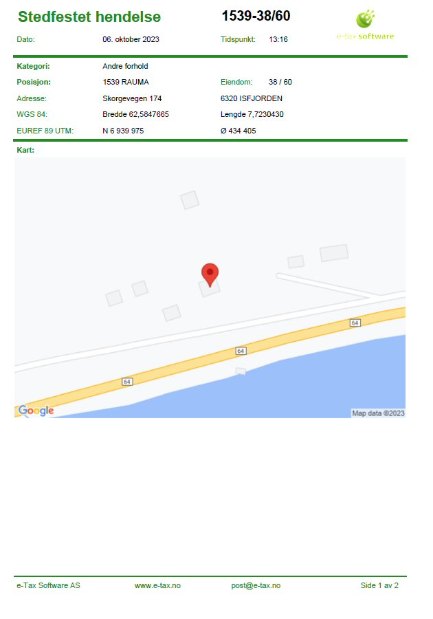 Appen er et verktøy for å dokumentere hendelser og observasjoner med kategori, bilder og tekst. Observasjonen sendes inn og det returneres et pdf-dokument tilbake til avsender pr mail. Dokumentet inneholder tid, sted (gps-koordinater), adresse, gbr, bnr, tekst, kart og bilder.